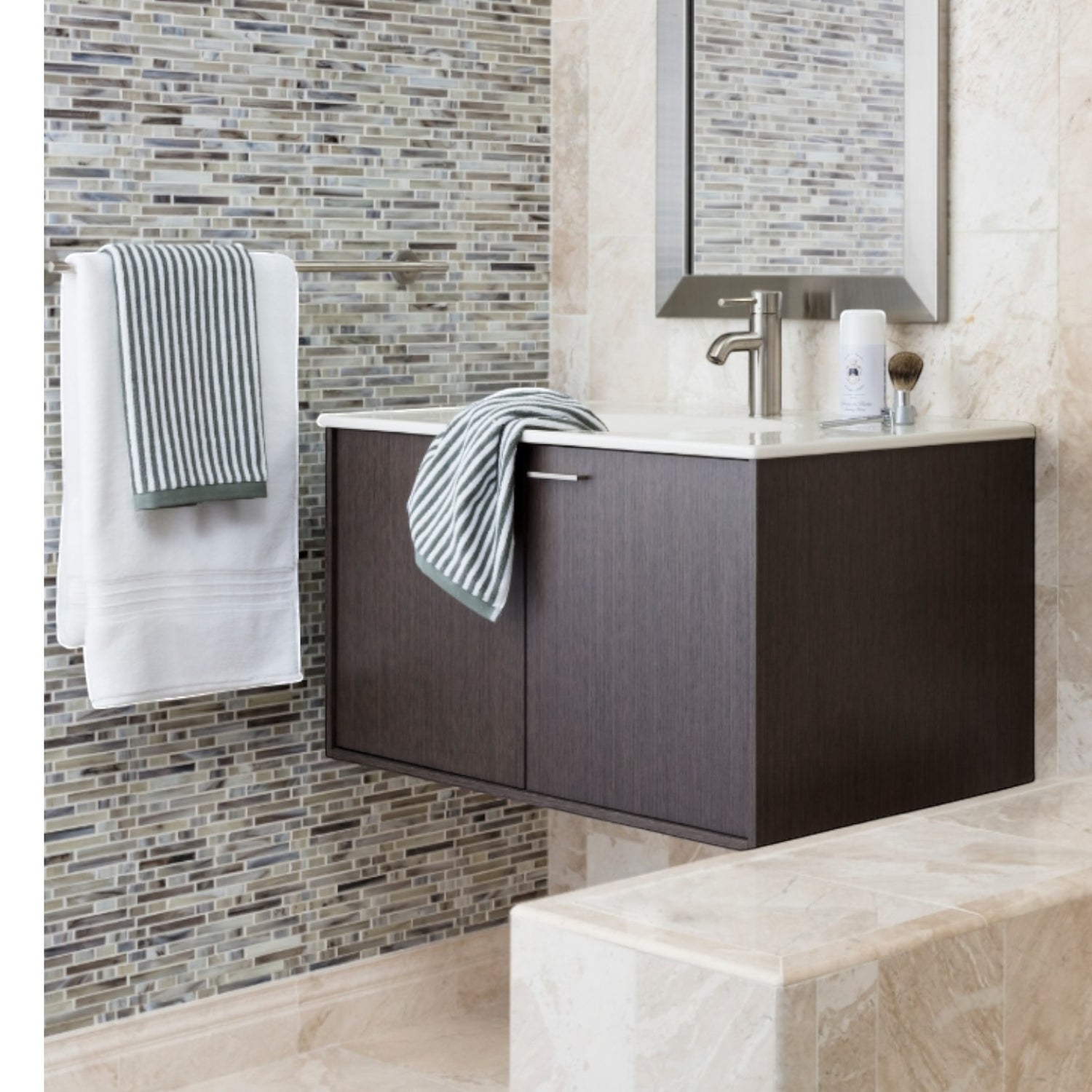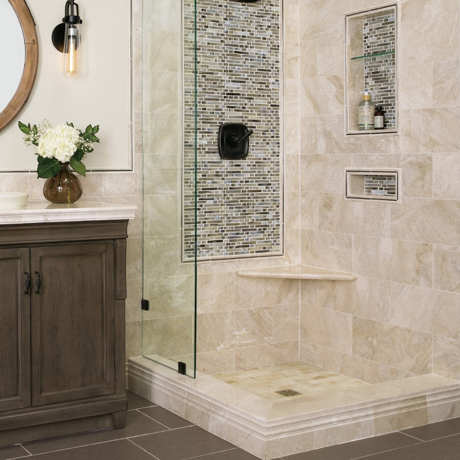 Ensures consistent geological tones from floor to wall for an uninterrupted high-end aesthetic.