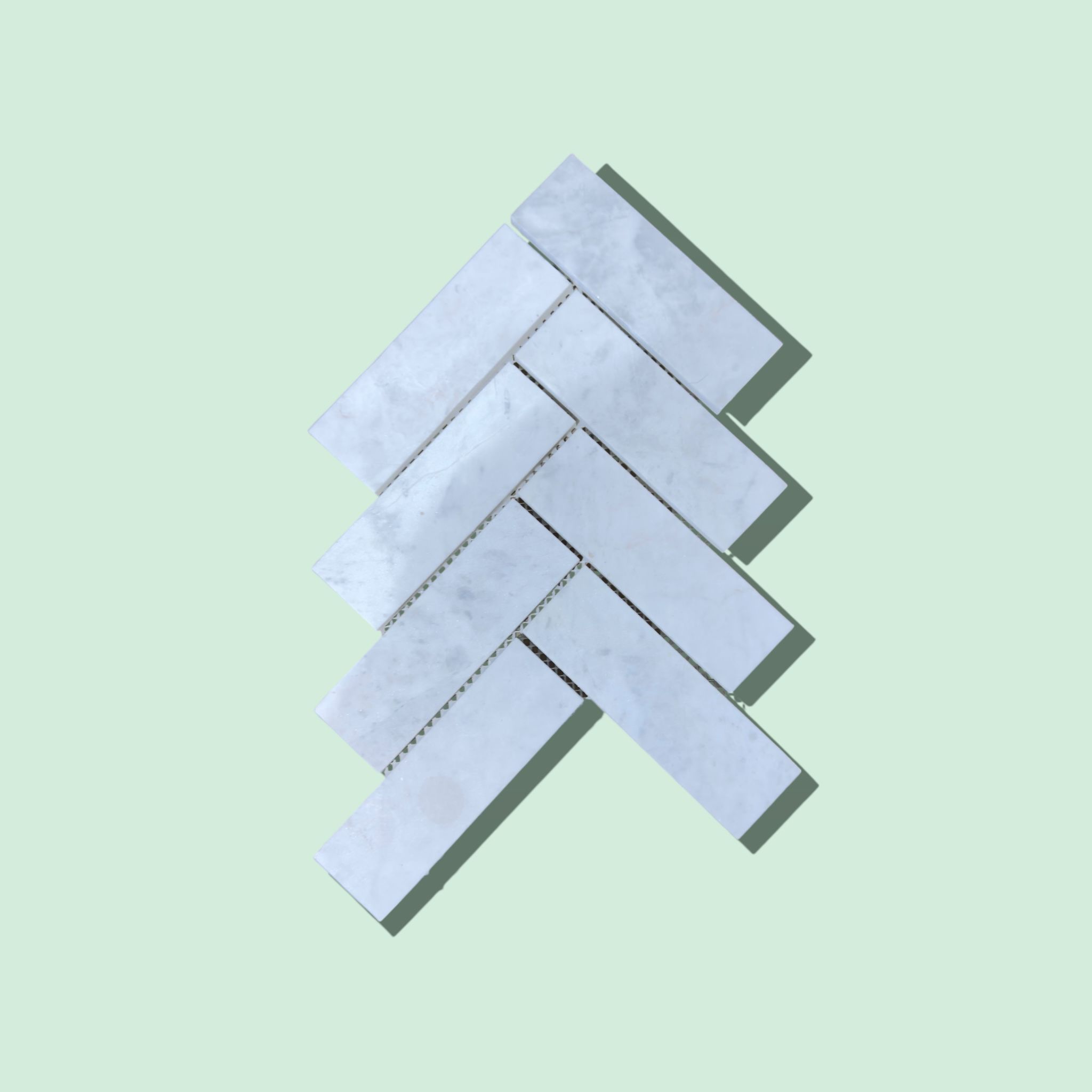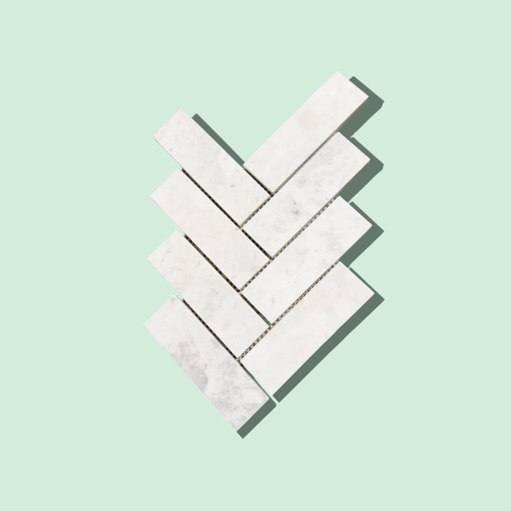 Calacatta Honed Marble Large Herringbone Mosaic ist auf Lager und wird versandt, sobald es wieder verfügbar ist