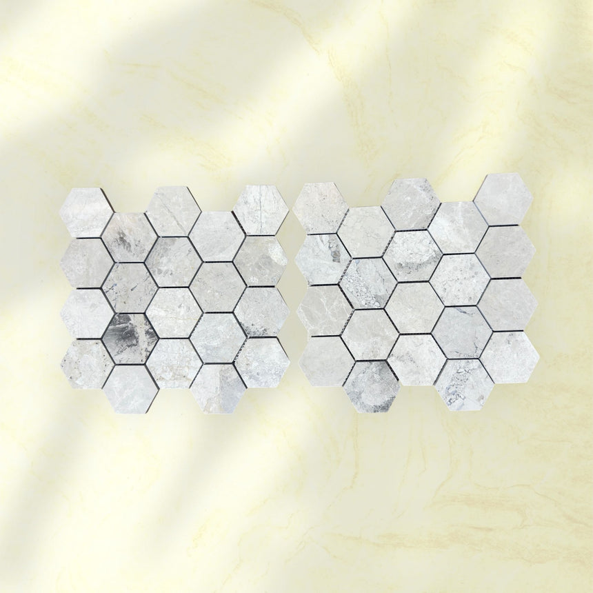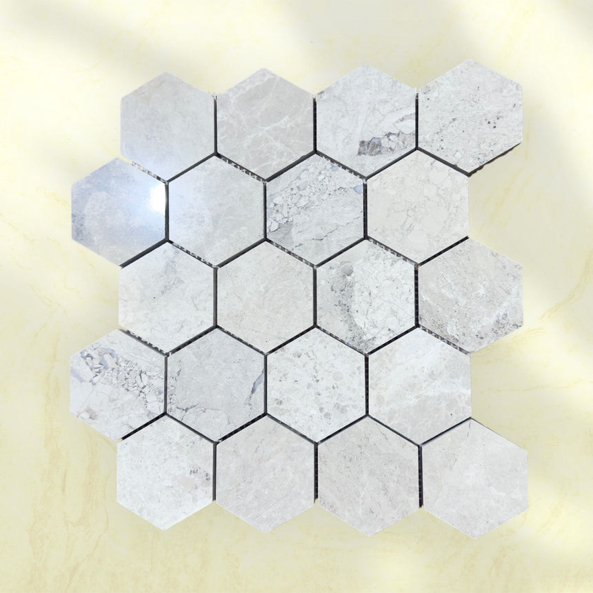Tundra Gray Hexagon Polished Marble Mosaic Tiles 75x75x10mm