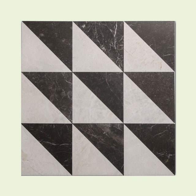 Triangle Honed Marble Black / Alpina White Fitz Collection Chequerboard