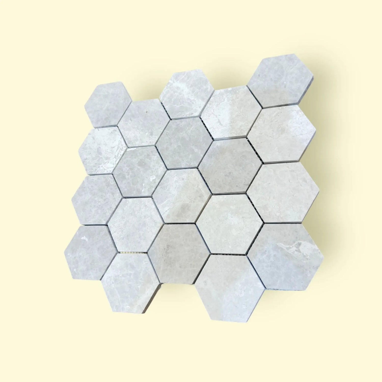🪨 Tundra Gray Hexagon Honed Marble Mosaic Tiles 75x75x10mm